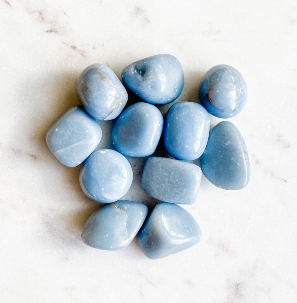 Angelitens mjuka blå färg är lugnande och tröstande och stenen har en underbart änglalik energi som fyller dig med ro och harmoni. Den sägs även skydda dig mot negativ energi. ♡
