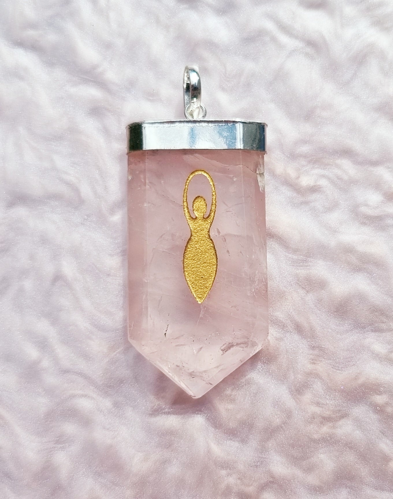 Bär med dig gudinnekraften från Moder Jord tillsammans med rosenkvarts kärleksfulla energier! Love by Stellas ljuvliga hänge av rosenkvarts har en infräst bild av Moder Jord i guld. Kraftfullare än så här blir det inte!