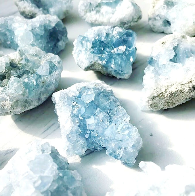 Celestin är en ljuvlig sten med en himmelsk babyblå färg. Förr i tiden trodde man faktiskt att celestin var bitar av himlen som fallit ner på vår jord.