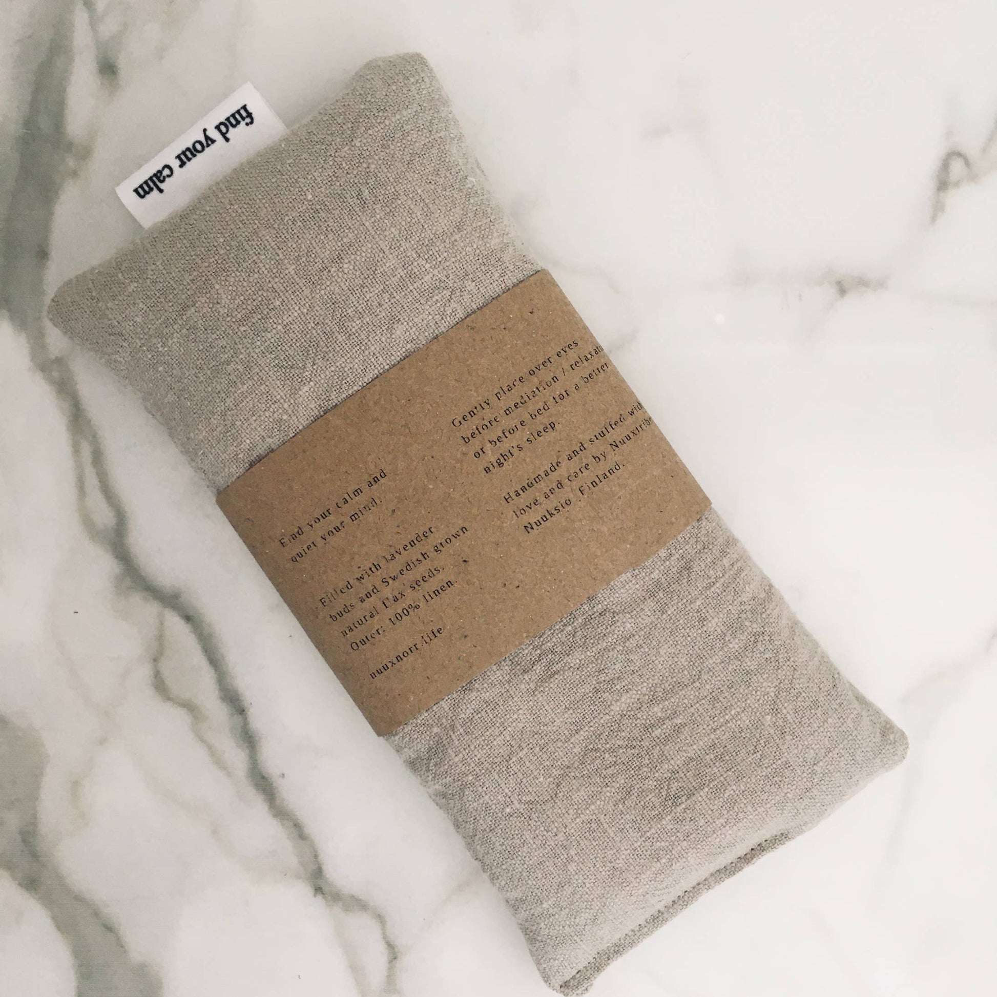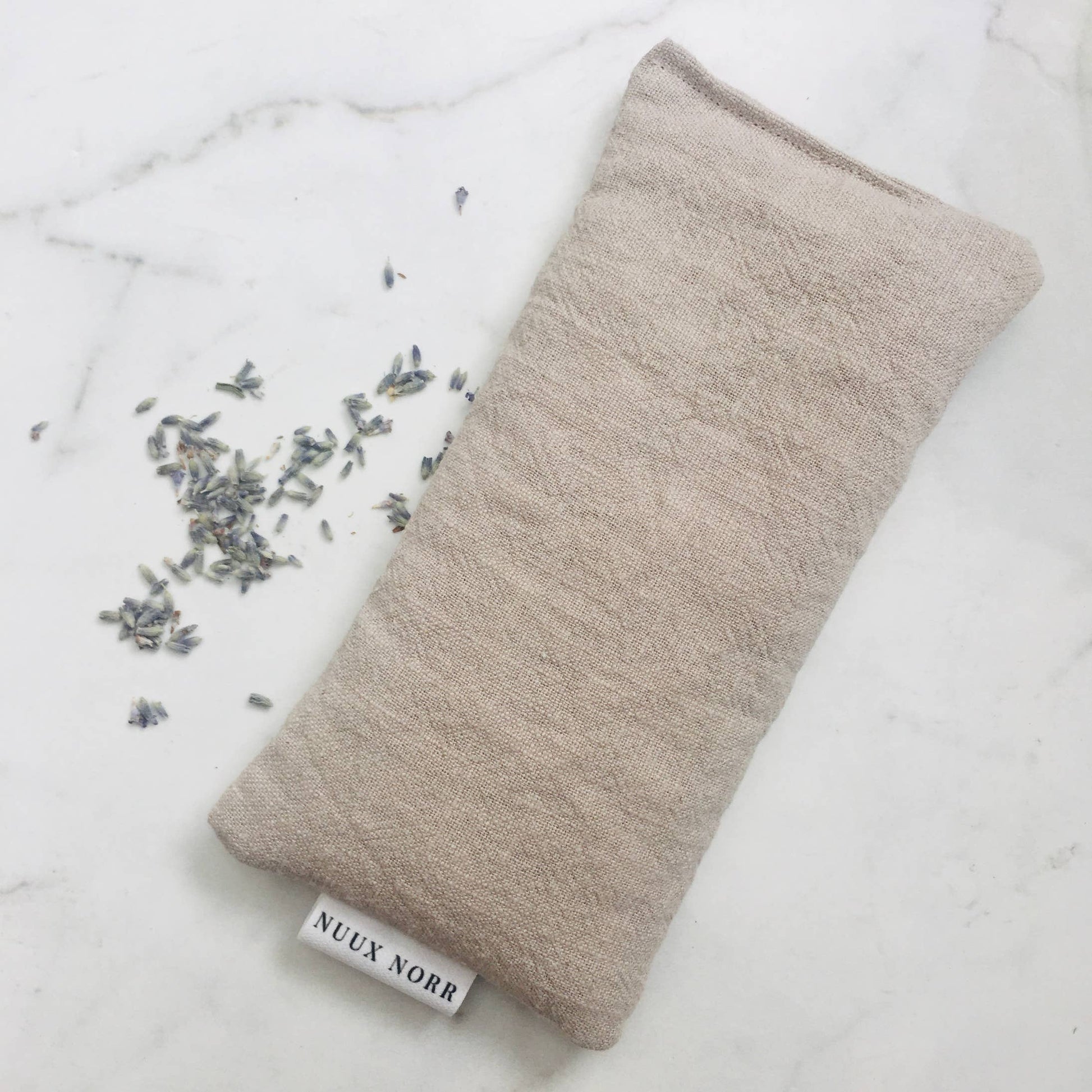 Fylld med lavendelknoppar och svenskodlade naturliga linfrön. Ytterfoder av 100% linne.